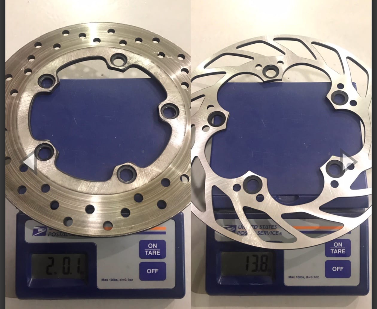 Save weight and reduce the rotational mass while improving on the looks of your motorcycle with these ultralight rear rotors from MM Racing of Canada. Not to be confused by cheap replicas, and other brands such a Mikey Moto, these are MM Racing branded rotors.